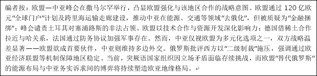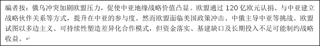 然而欧亚双方战略诉求却存在温差:欧盟意图成为俄罗斯南部邻邦的首要政经伙伴,而中亚国家仅视其为多元化外交选项之一。