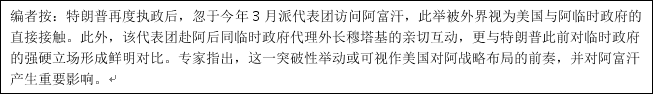 总之,对于历经四十年战乱的阿富汗而言,如何在复杂地缘政治环境中实现长治久安,临时政府仍任重道远。