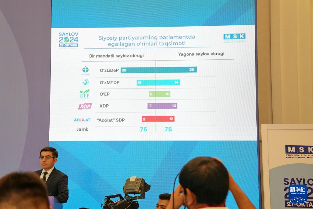 (10月28日,乌兹别克斯坦中央选举委员会在首都塔什干举行新闻发布会宣布乌最高会议立法院(议会下院)选举初步结果。)