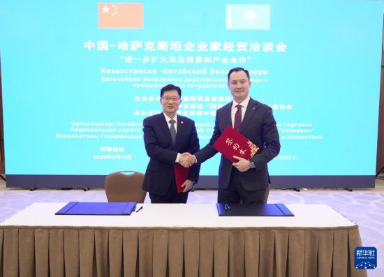 新华社阿斯塔纳2月11日电,中国—哈萨克斯坦企业家经贸洽谈会11日在阿斯塔纳举行,中哈工商界代表围绕油气贸易、清洁能源、农业合作、国际物流等重点合作领域开展深入研讨,双方企业代表签署中哈能源战略合作协议、中哈农产品进出口协议等8项合作协议。